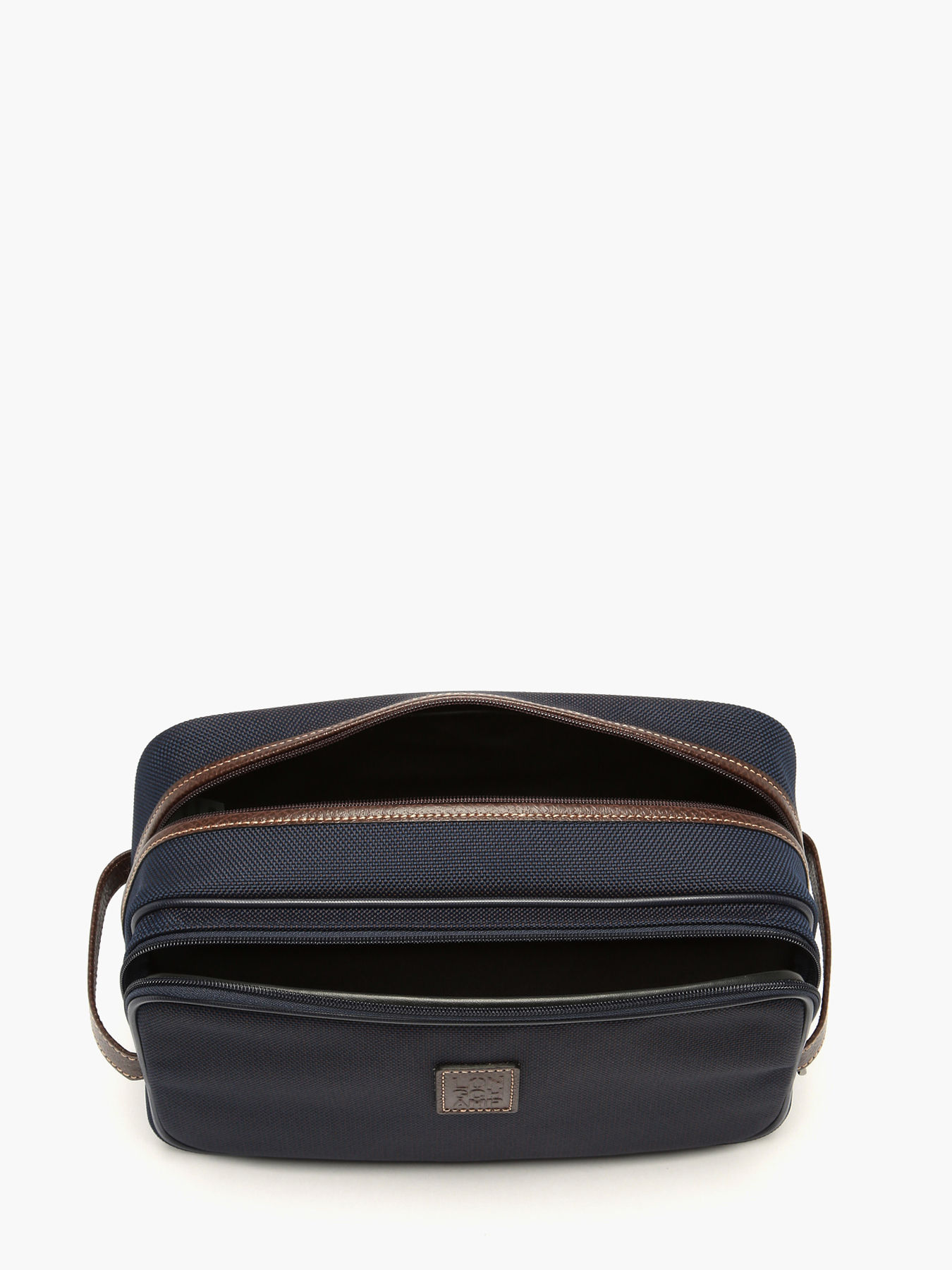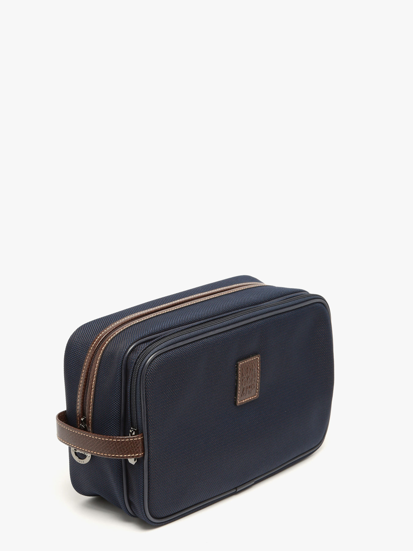 This spacious toiletry bag from Lonchamp has 2 zipped compartments, a handle and a washable interior. BOXFORD is the House's signature line, embodying discreet elegance. Sober and distinctive, its men's and business bags and luggage feature rectangular Longchamp branding embossed in the leather and contrasting stitching for a refined look. This two-tone canvas is trimmed with Russian leather for a rich relief effect.