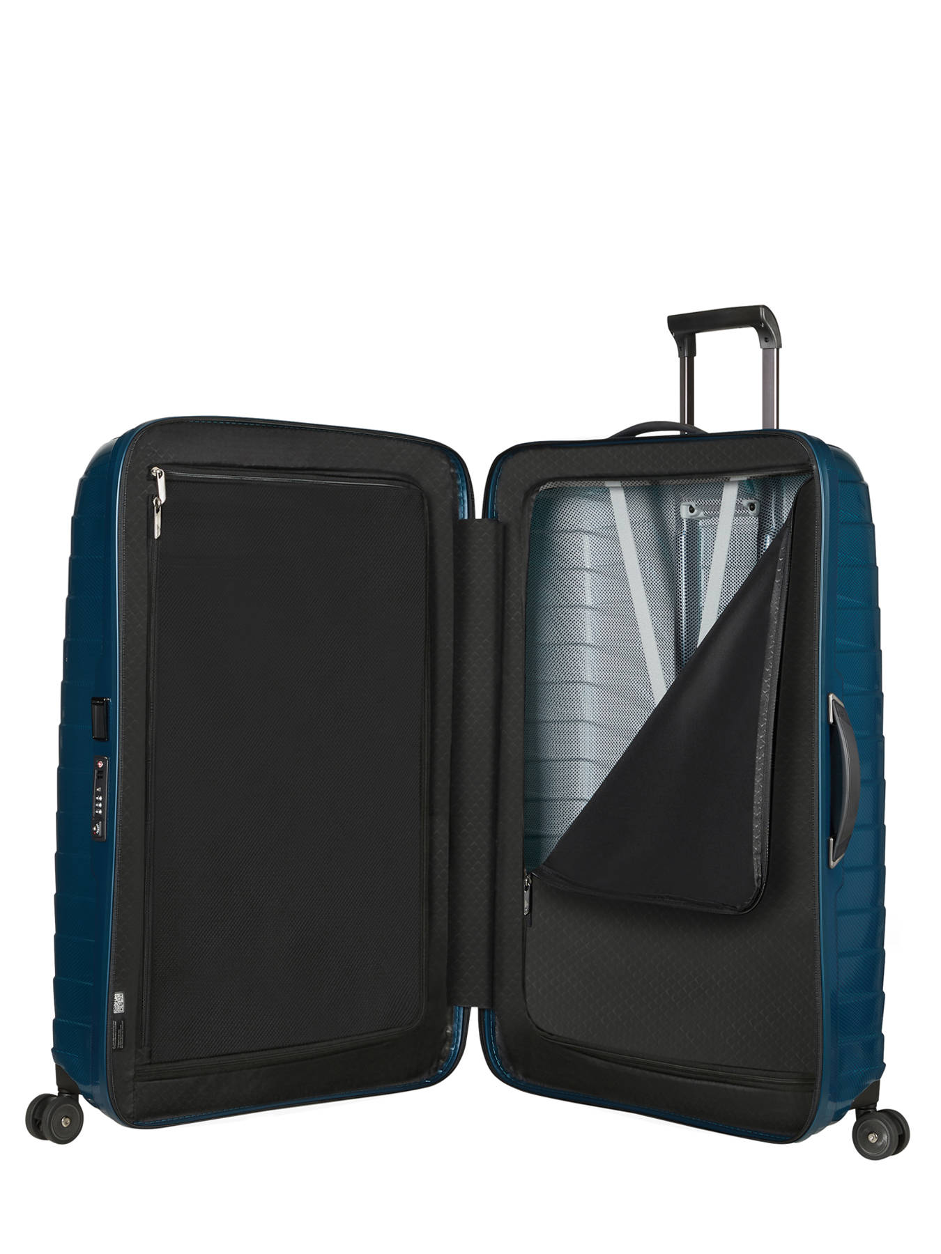 The Samsonite Proxis 75 cm is a premium hardside suitcase designed for long trips. Made in Europe with the innovative Roxkin™ material, it delivers outstanding durability while remaining lightweight and spacious. Weighing only 3.1 kg with a 98 L capacity, it can hold around 23 kg of belongings. Its refined exterior features a TSA combination lock, four smooth multidirectional double wheels, a double-tube telescopic handle, and both top and side carry handles for easy transport. A retractable address tag and sturdy zippers ensure security and convenience. Inside, two roomy compartments with zipped dividers, pockets, and cross straps keep your items neatly organized. The Proxis offers exceptional maneuverability, long-lasting performance, and premium travel comfort, backed by Samsonite’s 10-year worldwide limited warranty and the exclusive wecare program, providing first-class support and benefits during and after the warranty period.