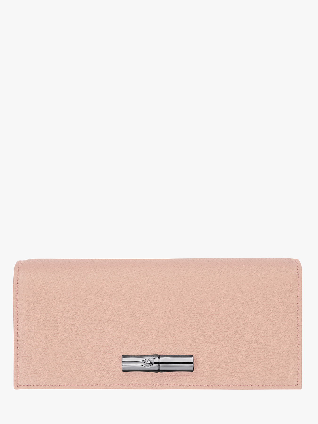 The Le Roseau flap wallet, made of cowhide leather, embodies functional elegance. Its sleek, rounded design exudes an irresistible charm, highlighted by the iconic bamboo clasp. This large wallet, with its snap closure, is designed to organize your essentials. It features 12 card slots, 4 slip pockets, and 4 zipped compartments, providing ample space for your papers, bills, and coins. The grained leather combines comfort and flexibility, reflecting a working girl and Parisian spirit.