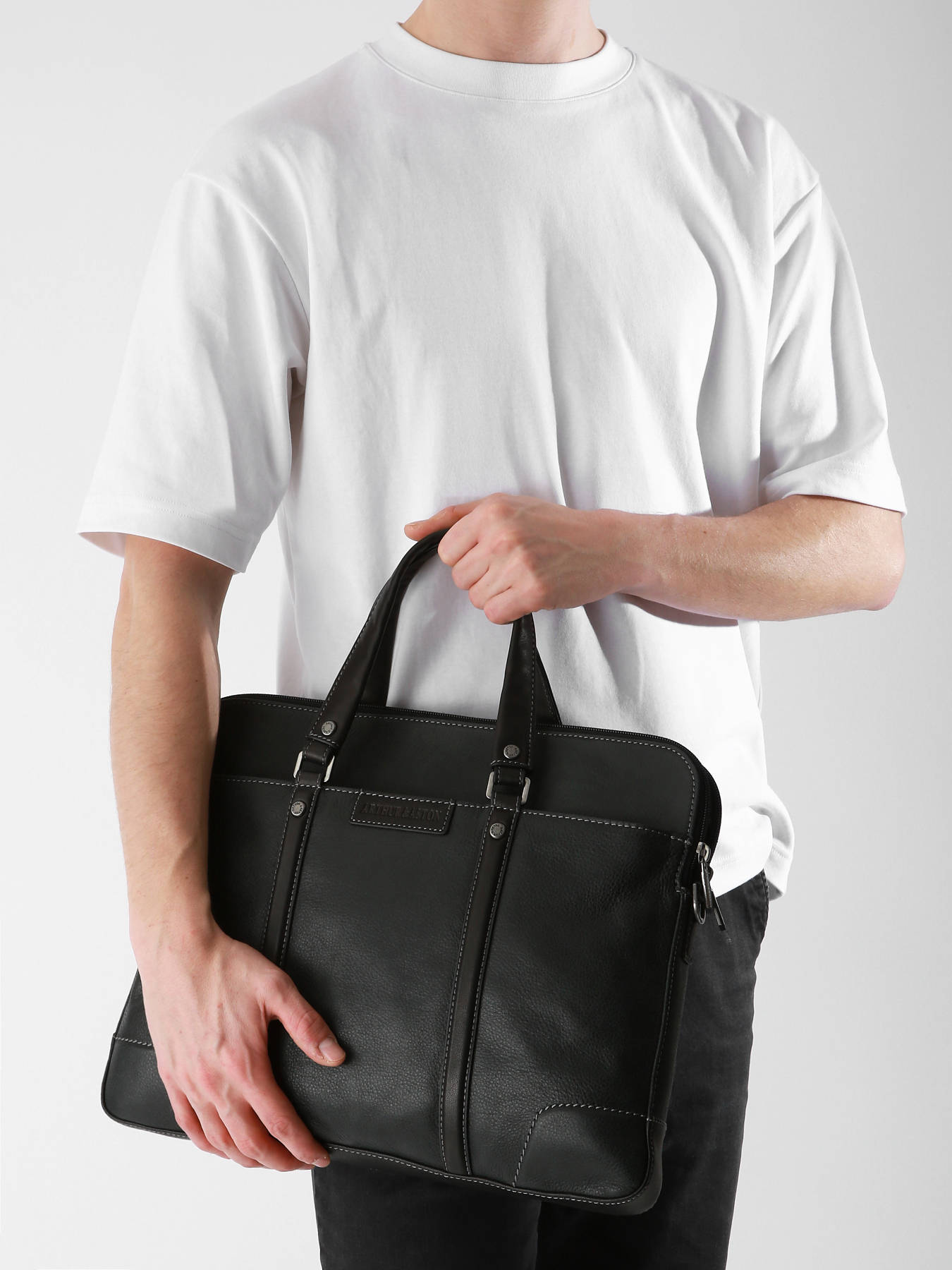 Pratique, sobre, et élégant, ce porte documents Joseph signé Arthur et Aston vous accompagnera au quotidien. Ce porte documents au format idéal comporte une poche zippée à l’avant, ainsi qu’à l’arrière et deux autres poches à l’intérieur. Il est doté de trois compartiments pour vous permettre d’y glisser votre ordinateur portable, votre tablette et  un bloc note, et dispose d’un bandoulière réglable et amovible pour plus de confort. En plus des poches, vous trouverez à l’intérieur un emplacement pour stylo. Ce porte document élégant en cuir se ferme sur le dessus à l’aide de fermetures éclaires ainsi que d’aimants. Emportez-le avec vous pour une journée au travail ou pour un voyage d'affaires.