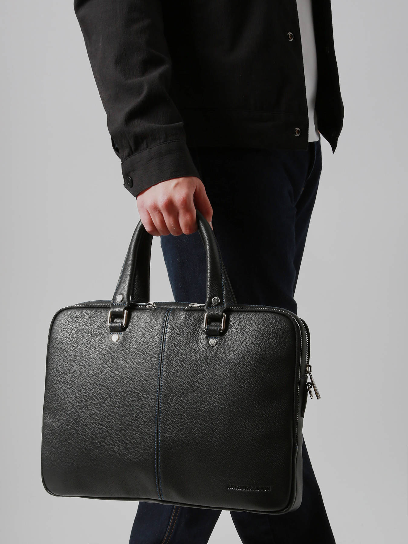 Le porte-documents ARTHUR & ASTON conjugue élégance et fonctionnalité pour un usage professionnel au quotidien. Confectionné en cuir de vachette de haute qualité avec un intérieur en textile robuste, il assure durabilité et style. Il dispose de deux poches avant, d’une poche arrière et d’un compartiment principal zippé, permettant de ranger documents, dossiers et accessoires en toute organisation. La bandoulière amovible et réglable offre un porté confortable à l’épaule, tandis que les poignées permettent un transport à la main, selon vos besoins. Léger, pratique et raffiné, ce porte-documents reflète le savoir-faire et l’élégance caractéristiques de la maison ARTHUR & ASTON.
