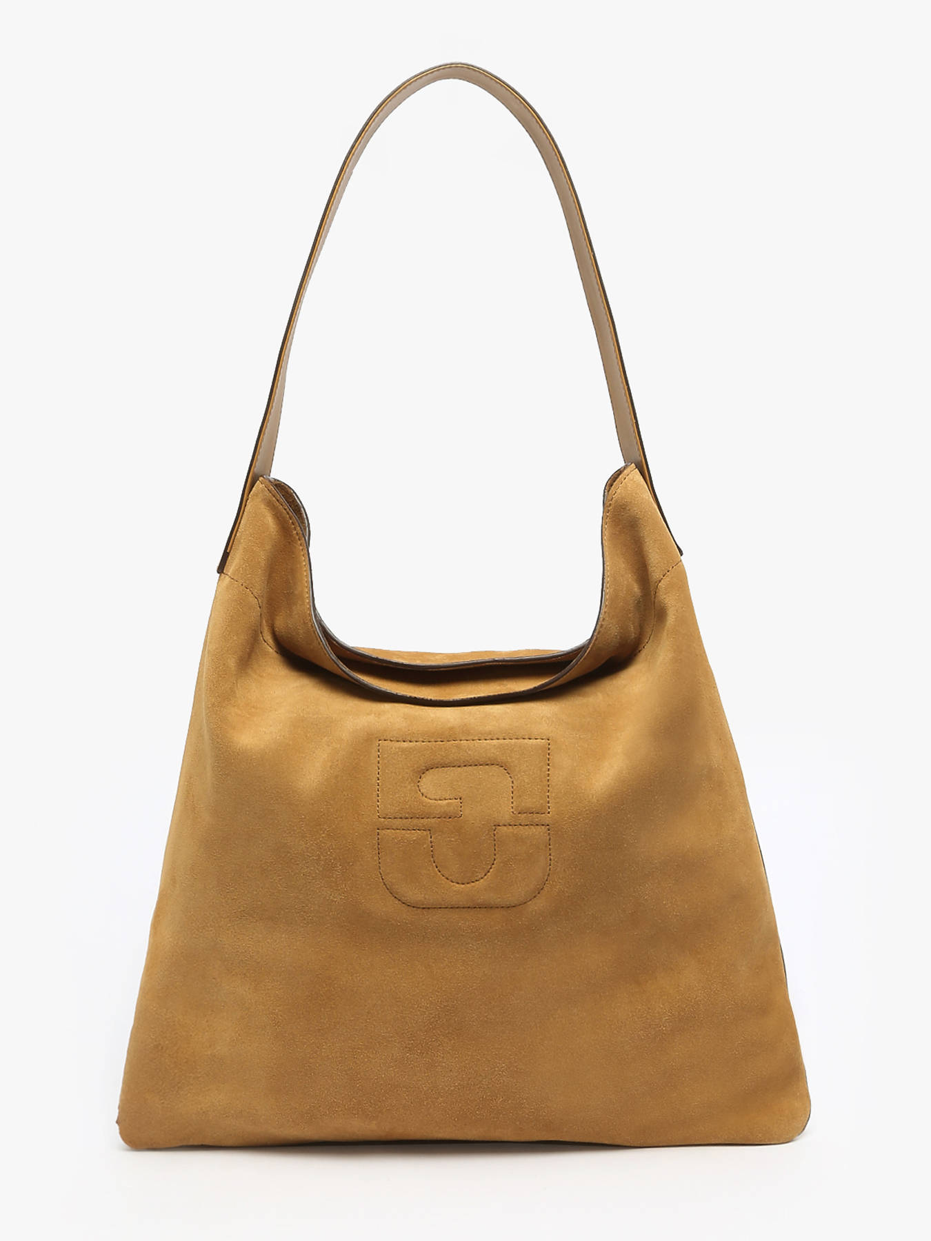Shoulder bag embossed emblem suede